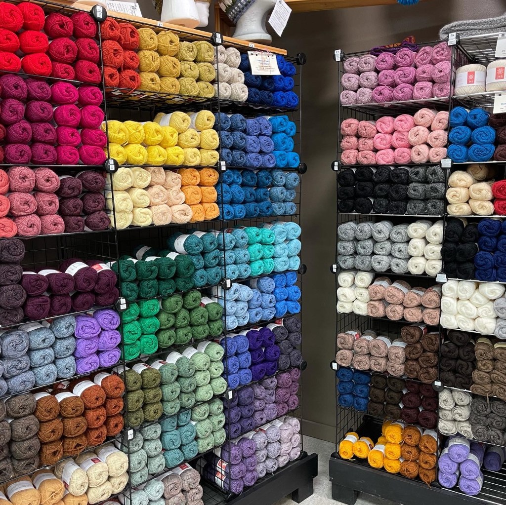 We specialize in what we like to call North Sea yarns. Those that come from Shetland and Norway. We now have 325 different choices in Shetland jumper weight yarn–the kind of yarn traditionally used for Fair Isle knitting. We are expanding our Rauma Norwegian line of Finullgarn as well. I also ordered much more Berroco Vintage in multiple weights to beef up our “family” yarn. Vintage is a favorite because it washes, wears, and knits well thanks to a partial wool content. Changes like this don’t happen overnight, but slowly you will see shifts in our stocking. Meanwhile, the Sale Bin is an exciting place to visit!